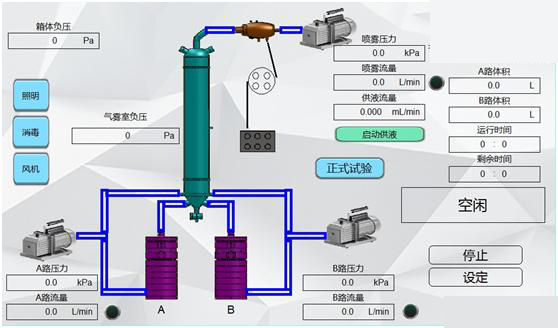 點擊“過濾試驗”按鈕,即可進入到試驗主界面,如圖所示(系統(tǒng)試驗主界面配圖):