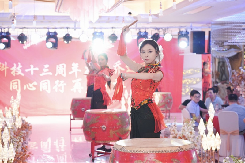2025年8月23日晚,儀天公司于新址舉辦十三周年慶暨喬遷晚宴,數名員工、合作伙伴及行業嘉賓齊聚一堂,共同見證這一里程碑時刻。晚宴以傳統擊鼓表演開場,通過擊鼓的聲音向周圍傳遞喜悅。